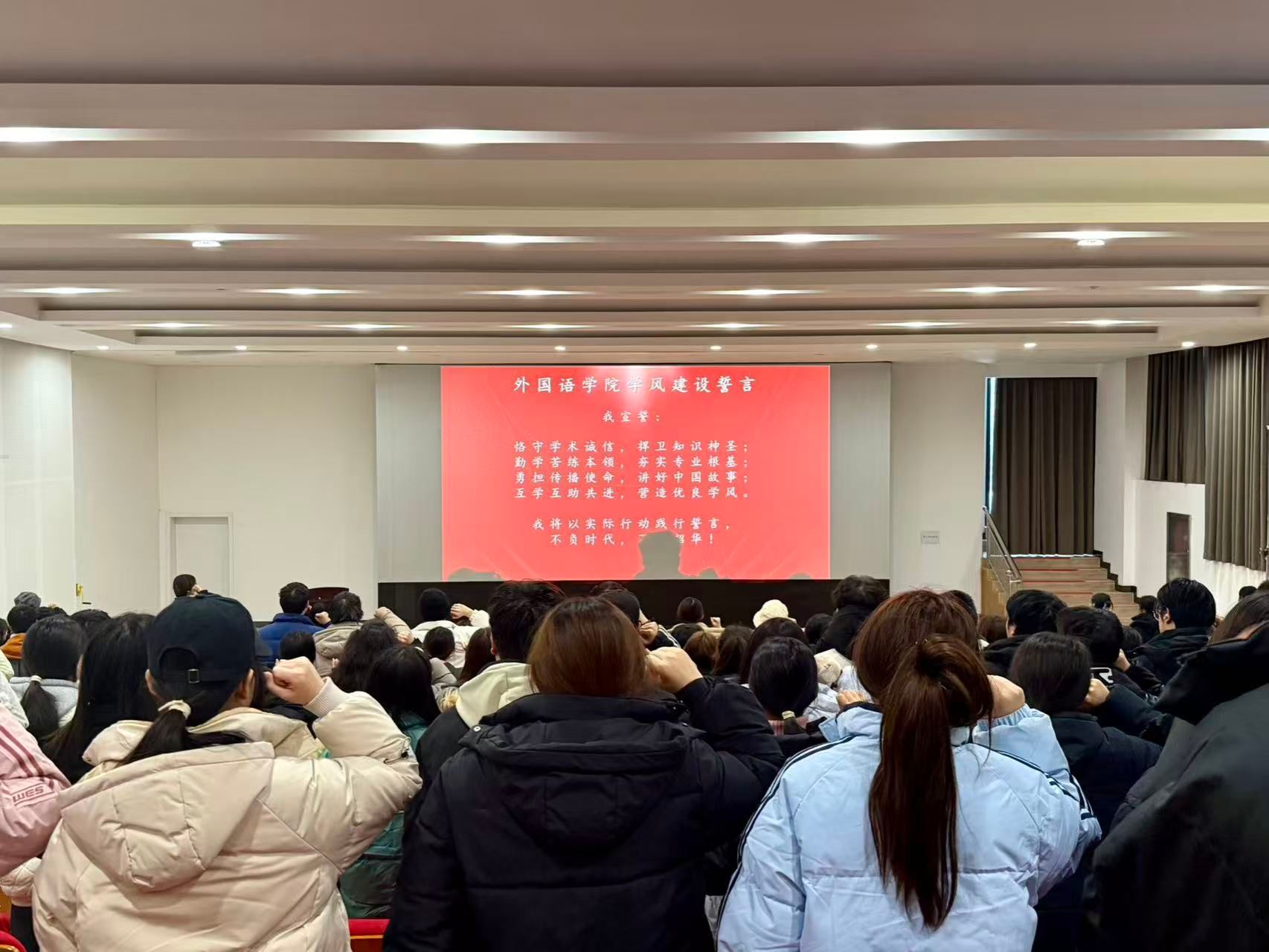 本网讯 为强化学风引领,激发奋进动力,12月31日,外国语学院2025年度本科生学业表彰暨2026年学风建设动员大会在红色影院举行。学院党政领导班子成员、专业课教师以及2023、2024、2025级本科生参加会议,会议由雷琨副院长主持。