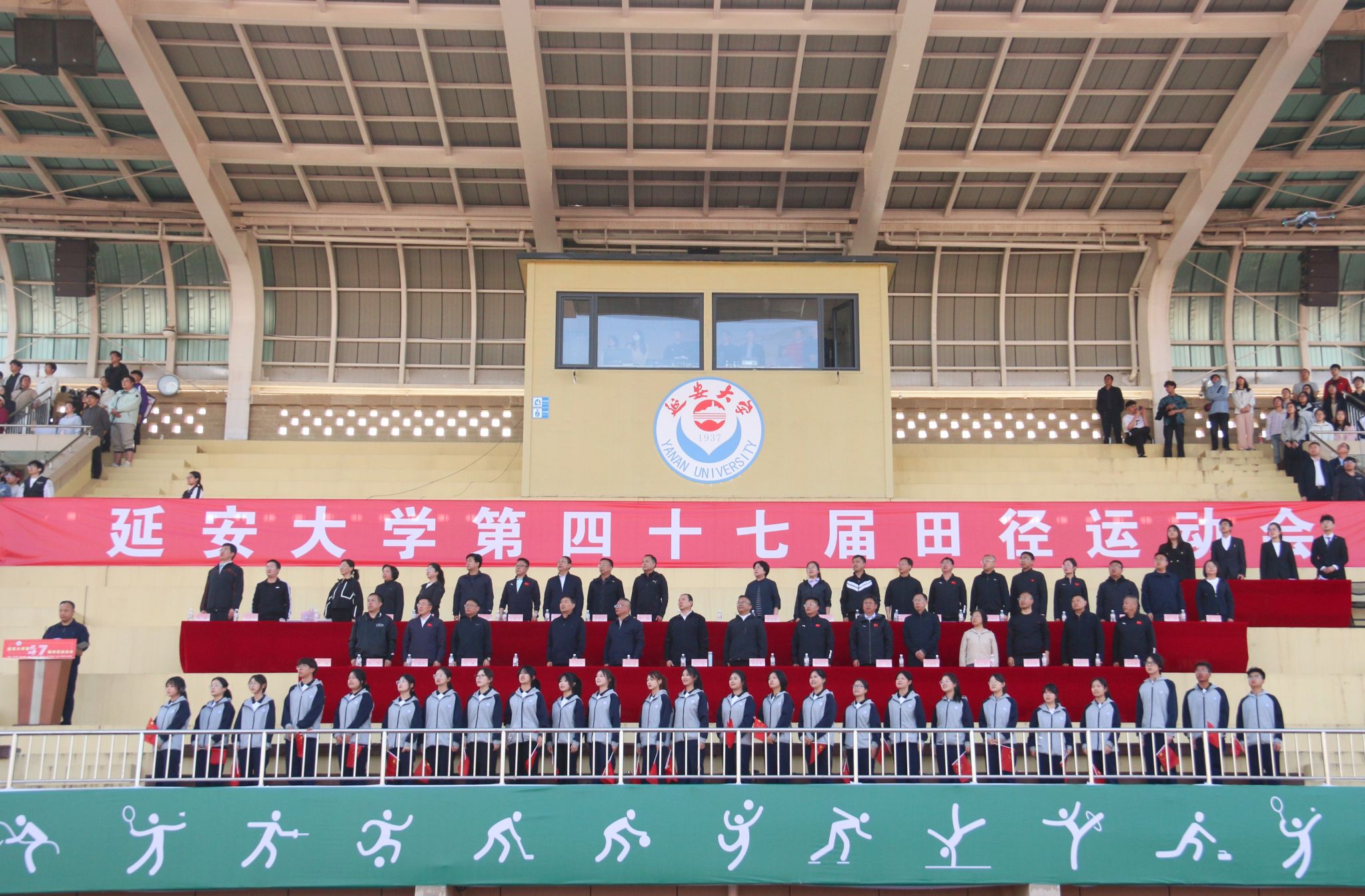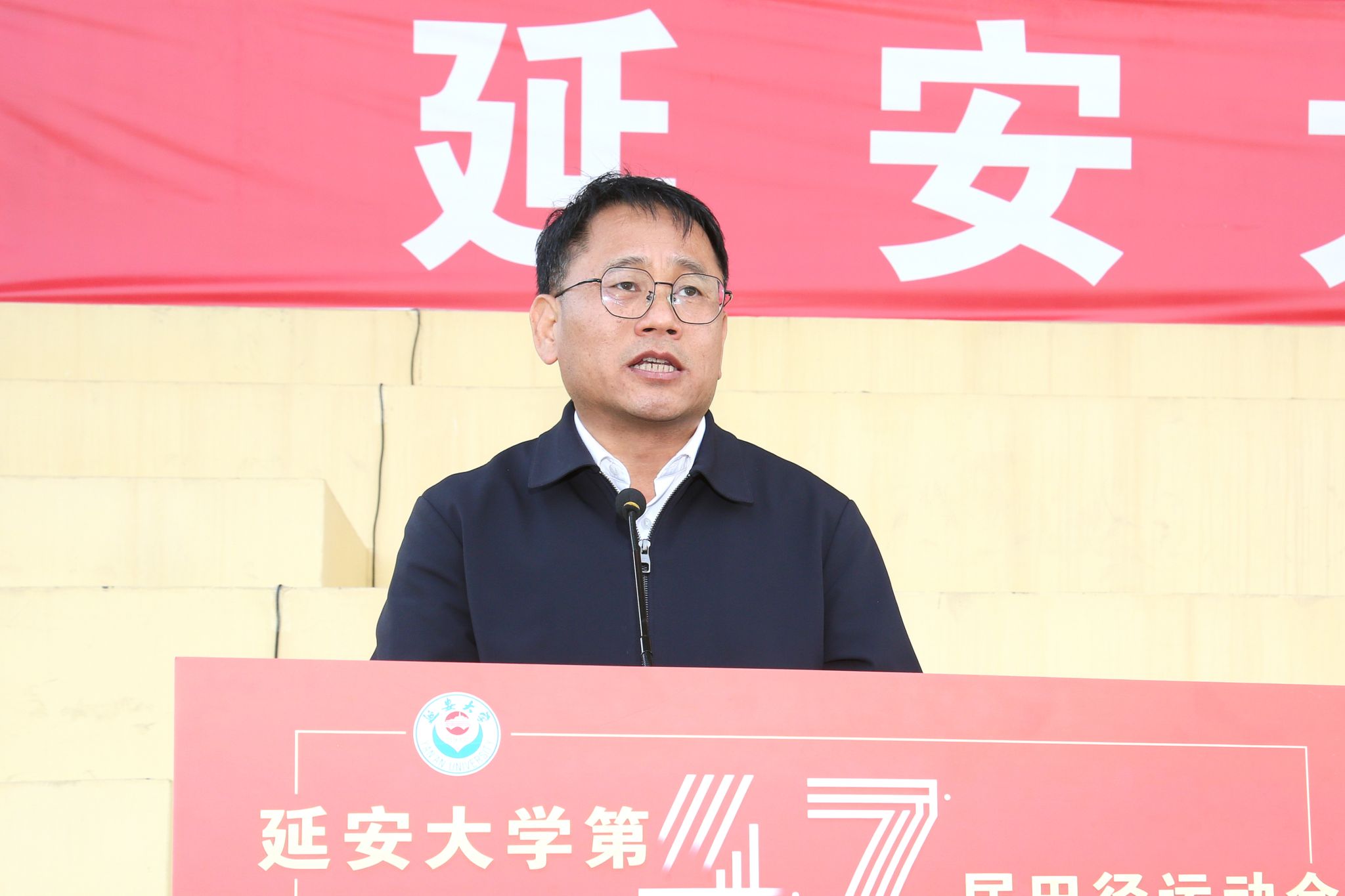 4月26日下午,举行第四十七届田径运动会闭幕式,副校长吕磊出席,闭幕式由王进主持。党委宣传部部长刘小淼宣布了体育道德风尚奖和特别贡献奖获奖单位名单。教育科学学院、政法与公共管理学院、鲁迅艺术学院、经济与管理学院、马克思主义学院、化学与化工学院、延安医学院、生命科学学院获得体育道德风尚奖;体育学院、基础教育中心获得特别贡献奖。