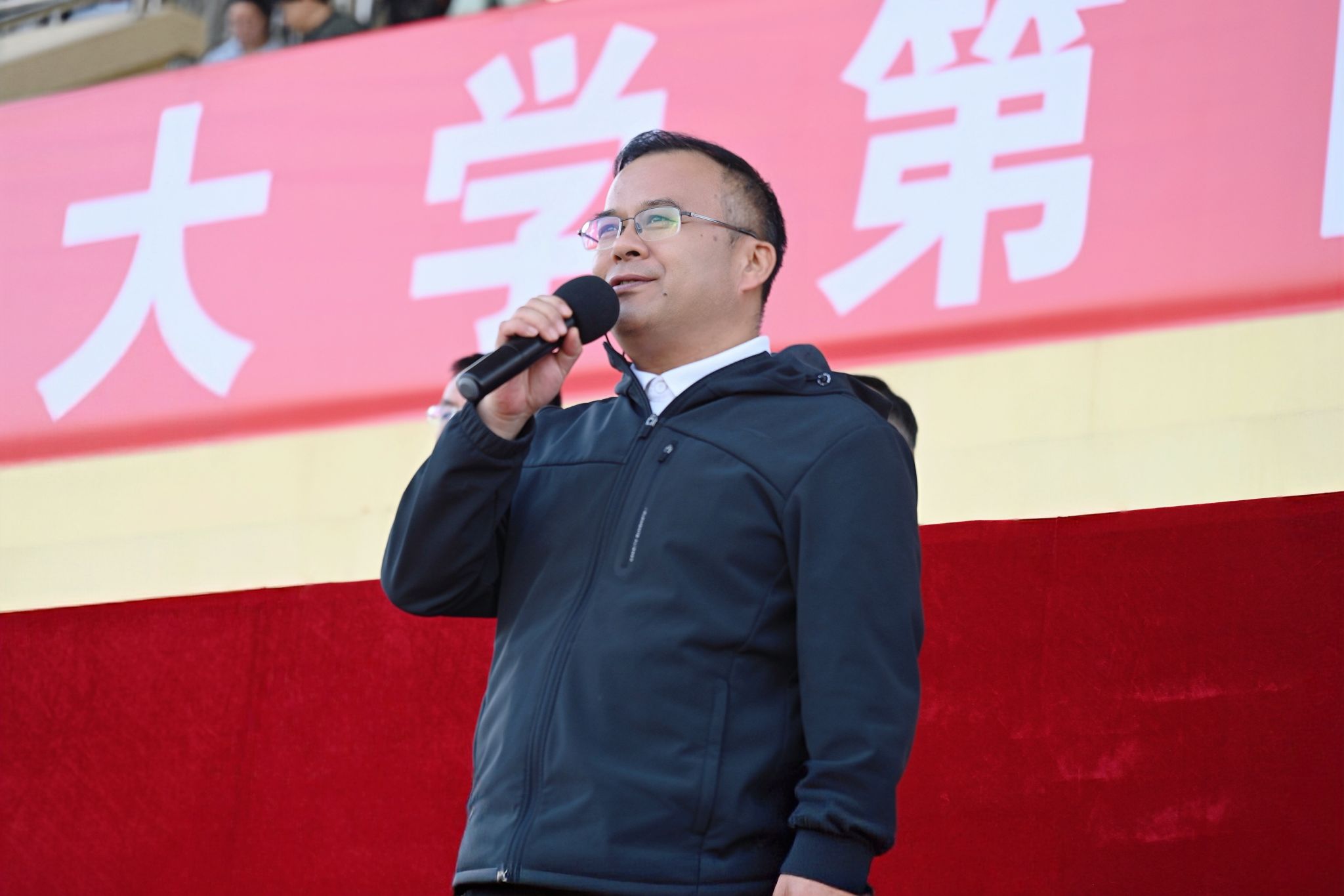 校党委副书记杨伟宏在开幕式上致辞。他指出,作为具有光荣传统的红色大学,学校始终把体育工作摆在人才培养的重要位置。运动会是锤炼体魄的赛场,是磨砺意志的熔炉,更是凝聚力量、增进友谊的舞台。要坚持健康第一,让体育成为青春成长的必修课;要弘扬体育精神,让拼搏协作成为校园新风尚;要抓实以体育人,让体育育人贯穿人才培养全过程。他希望全体运动员赛出风格、赛出水平,裁判员、工作人员恪尽职守、严格赛纪,共同把本届运动会办成一场“文明、热烈、精彩、圆满”的体育盛会。